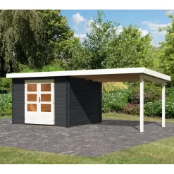 Abri De Jardin En Bois Massif Anthracite 10,60m² Bastrup 7 Avec Appentis 300cm – Karibu