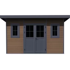 Abri De Jardin En Bois Composite 28mm Aspect Bois 14,90m² PREMIUM Toit Plat – Woodlife Garden