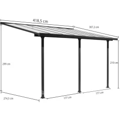 Toit De Terrasse 15,38m² Aluminium Anthracite Et Polycarbonate Habrita