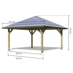 Kiosque De Jardin Carré Granada – 3,77×3,77m – Avec Shingles – Karibu