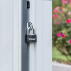 La particularité de cet abri est sa porte de type écurie, dont les montants inférieur et supérieur peuvent être ouverts indépendamment. Vous pourrez ainsi empêchez l’accès de l’abri à vos enfants ou à vos animaux domestiques, tout en maintenant une circulation d’air afin de limiter l’accumulation de chaleur pendant la saison estivale. La porte et les éléments de renfort angulaires sont peints couleur crème, pour un contraste élégant et une intégration harmonieuse dans votre environnement extérieur. La porte peut être verrouillée à l’aide d’un cadenas non inclus.