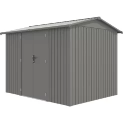 Son look moderne et sa couleur contemporaine s’intègrent dans tout type d’extérieur. L’abri de jardin dispose d’une double porte avec serrure à clés (3 clés fournies), très utile pour conserver en toute sécurité son contenu. La double porte est battante et haute, vous pourrez ainsi rentrer dans l’abri tout votre matériel de jardinage encombrant ou votre mobilier, ou encore tout l’équipement de votre piscine si vous le destinez en pool house.