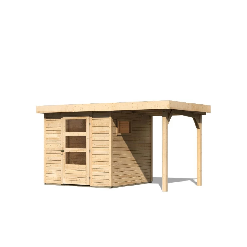 L’abri de jardin Freiburg avec appentis de Karibu saura vous séduire par sa multifonctionnalité.
