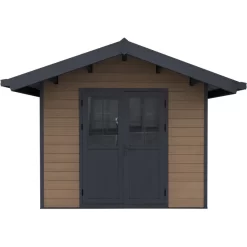 La structure en aluminium qui fait l’ossature de l’abri de jardin est à la fois solide et jolie, car elle est discrète et se marie parfaitement avec la teinte du composite.