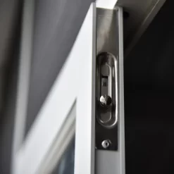 La large double porte en aluminium avec double vitrage 5-6-5mm et verre trempé vous permettra de pénétrer dans votre abri de jardin très facilement et d’y faire entrer vos objets et outils les plus encombrants. Les grilles d’aération à l’arrière de l’abri favorisent le renouvellement de l’air quand la porte reste longtemps fermée.