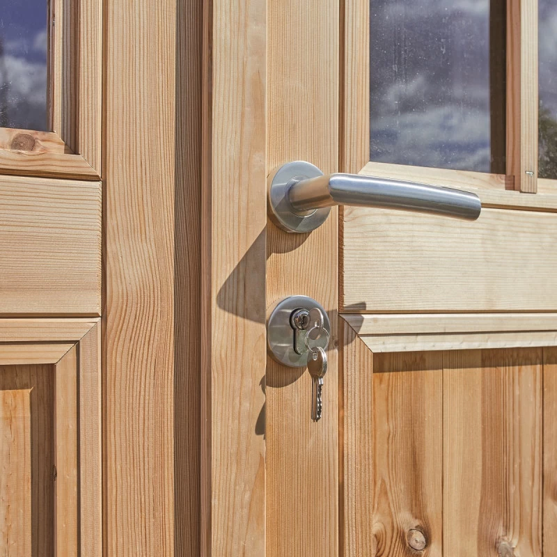 Fonctionnel, l’abri de jardin en bois massif 14m² Forest Style est équipé d’une double porte qui se ferme à clé. Ainsi, vos objets y seront en toute sécurité !