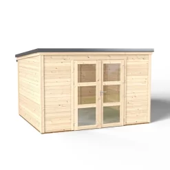 Parfait pour vos outils de jardinage, l’abri en bois Shelty Modern du fabricant Forest Style vous offrira une surface utile de 8,9m² et un large accès grâce à sa double porte vitrée. Le vitrage en verre et la poignée en inox sont les finitions de qualité pour un look encore plus accueillant. La serrure à barillet met votre contenu en toute sécurité.