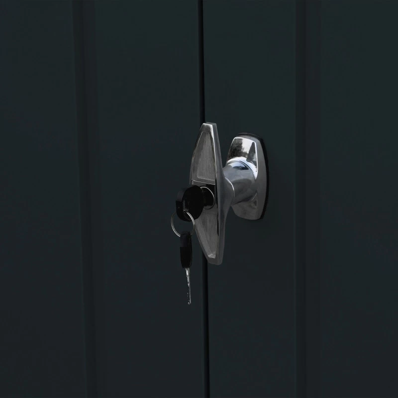 Outre sa construction durable, l’abri de jardin en métal 3,92m² Duramax possède une porte battante renforcée et doublée, avec une épaisseur de 33mm. Elle s’ouvre et se ferme aisément à l’aide des vérins à gaz. Équipée d’une serrure cylindrique et de deux clés, elle rend cet abri en métal de la marque Duramax un endroit bien sécurisé.