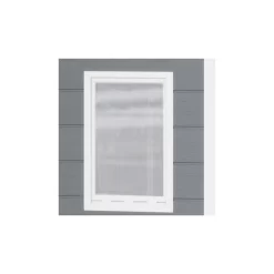 Abri vendu en kit complet avec un plancher, une porte verrouillable (emplacement inversé pas possible), une grille d’aération, une fenêtre fixe sur la façade.