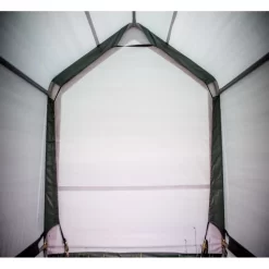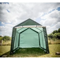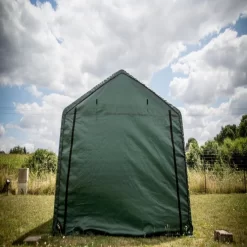 Disposant d’une superficie de 13,30m² et d’un volume utile de 32,50m³, cette cabane de rangement est assez spacieuse pour abriter tout votre mobilier de jardin, motos, vélos, remorque, bois de chauffage, sac de terreau etc. Le toit à double pente est spécialement conçu dans le but de laisser l’eau s’écouler le long des parois. Soucieux d’apporter un produit pratique et confortable, cet abri en toile renforcée est équipé d’une porte amovible à fermeture à glissière, disposant d’une large ouverture pour faciliter l’accès aux objets encombrants.