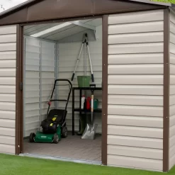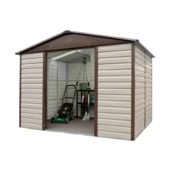L’avis du spécialiste au sujet de l’abri de jardin métal beige et marron 4,79m² + kit d’ancrage inclus – YARDMASTER