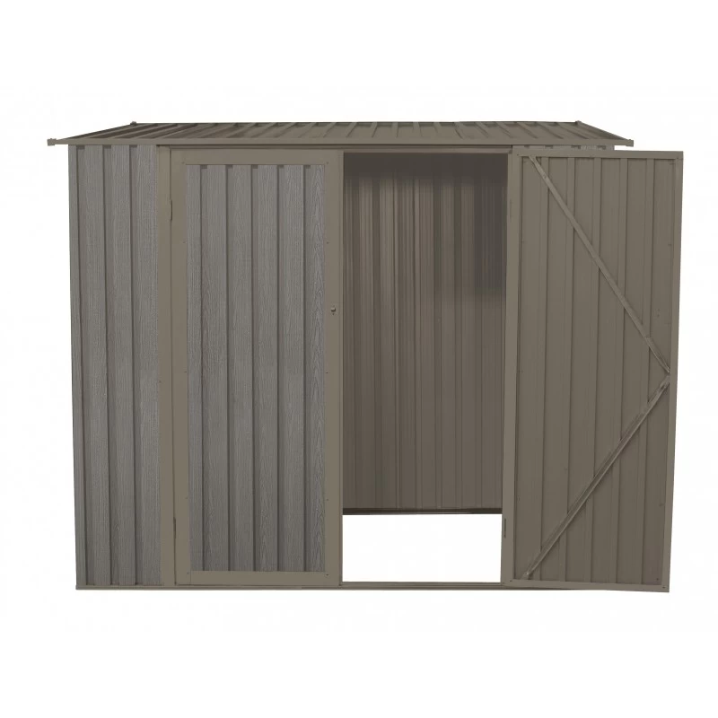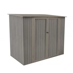 Le design moderne de cet abri de jardin en métal allie un toit monopente (qui penche vers l’avant) à une couleur grise avec un effet bois vieilli. La surface utile de 2,79m² et le faîtage haut de 194cm vous permettront d’y ordonner tous vos outils de jardinage. L’intérieur est bien aéré grâce aux grilles de ventilation incluses. Les portes battantes vous offriront un accès rapide et aisé.
