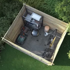 La construction robuste des abris de jardin Nicia est réalisée en épicéa massif issu des forêts gérées d’une manière responsable. Les madriers de 28mm s’emboîtent parfaitement l’un dans l’autre en assurant ainsi un assemblage solide et étanche. Le traitement autoclave vert Classe III appliqué en usine les protège des intempéries, du pourrissement et des insectes et leur donne une teinte originale. Aucun autre traitement n’est nécessaire.