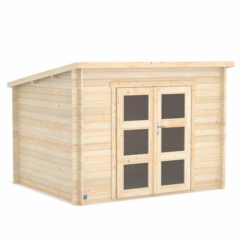 L’avis du spécialiste sur l’abri de jardin monopente en bois massif 7,4m² AMAZONIE – madriers 28mm – Forest Style :