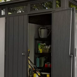 Fonctionnel et esthétique, cet abri de jardin de 4,7m² Keter s’intégrera d’une manière naturelle dans votre jardin grâce à son design innovant qui rappelle l’aspect vieilli du bois. Pour un look personnalisé, vous pourrez peindre les parois grises dans une autre couleur de votre choix.