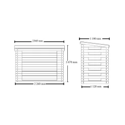 La structure de cet abri-bûches est conçue avec des madriers de 20mm, ce qui lui procure une très bonne stabilité et résistance dans le temps. Le bois certifié est livré brut, prêt à être lasuré ou peint.