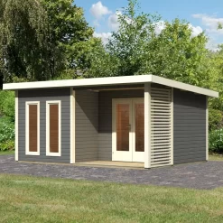 L’avis du spécialiste sur l’abri toit plat 18,78m² bois massif gris terre 40mm Radeburg 5 – Karibu :