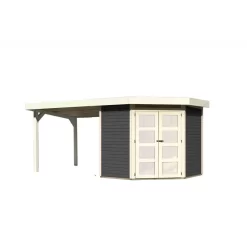 L’avis du spécialiste sur l’abri toit plat 4,62m² Goldendorf 3 + auvent en bois vitrifié gris 19mm – Karibu