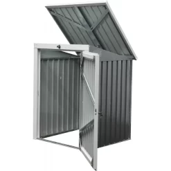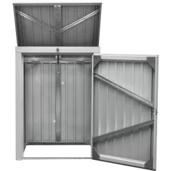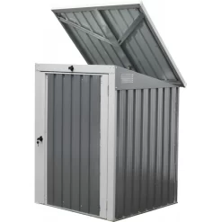 Cet abri métallique est prévu pour accueillir une poubelle de 240L. Réalisé en tôle galvanisée d’une épaisseur de 0,3mm très durable, robuste et résistant aux intempéries. Le revêtement de qualité ne craint pas les rayures, il est gris clair pour les parois et gris anthracite pour la porte. Conçu pour une utilisation en extérieur, ce modèle très robuste possède un cadre en acier avec renforts diagonaux en profilés dans les coins.