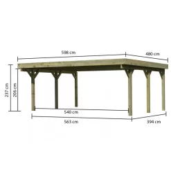 Garanti 5 ans et doté d’un toit en acier, le carport en bois traité 28,3m² Karibu est un produit durable. Son large passage de 540cm vous permettra de manœuvrer facilement vos voitures tandis que sa belle hauteur sous toit de 234cm met en valeur son aspect spacieux. Vos voitures y seront bien protégées !