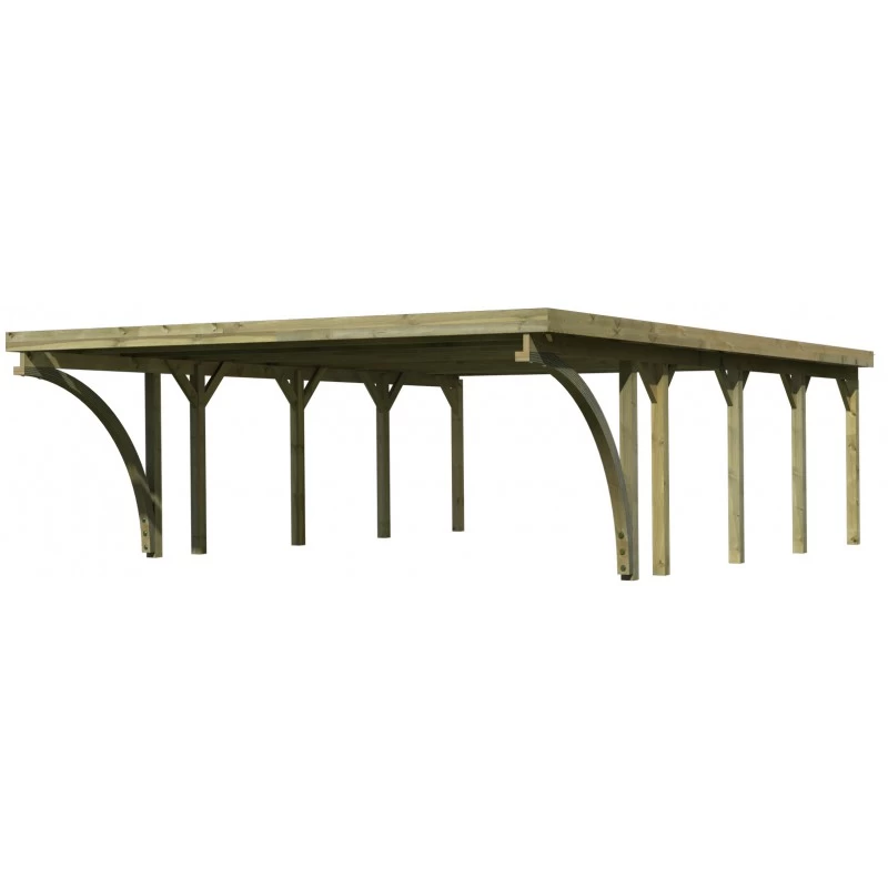 L’avis du spécialiste sur le carport pin massif traité autoclave 40,2m² Classic Double 2 + toit acier + 2 arcs Karibu