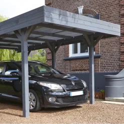 Carport Simple 15,75m² En Bois Lasuré Gris Anthracite Louison Forest Style