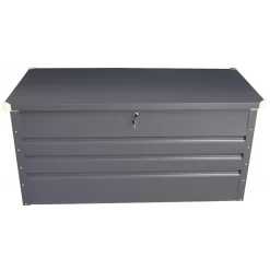 Besoin de rangements supplémentaires dans le jardin ou votre garage ? www.mon-abri-de-jardin.com vous propose ici le coffre X-Metal de couleur anthracite, très résistant, et esthétique avec sa couleur grise anthracite.
