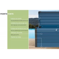 Il est conçu en acier gainé PVC assurant une bonne protection contre les chocs et contre la corrosion. Il est équipé d’un plancher pour éviter que votre matériel soit humidifié par temps de pluie.