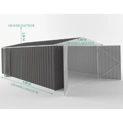 La conception de ce garage en métal est exceptionnelle. Les parois sont épaisses de 0,35mm, soit 40% de plus que la majorité des garages métalliques sur le marché. De plus, l’acier utilisé est d’une très grande qualité. Il s’agit d’un acier galvanisé Zincalume, et d’une peinture Colorbond 5 couches, ce qui le rend très résistant aux chocs et qui permet de le garantir 30 ans anti-corrosion.