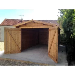 L’avis du spécialiste sur le garage en bois massif 40mm traité teinté marron Gardy Shelter