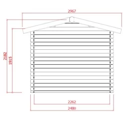 Sa robustesse est garantie par ses épais madriers double rainures et languettes de 40mm usinés avec le système Windblock apportant une meilleure stabilité et une excellente étanchéité. Son toit est également en bois massif (voliges de 16mm).