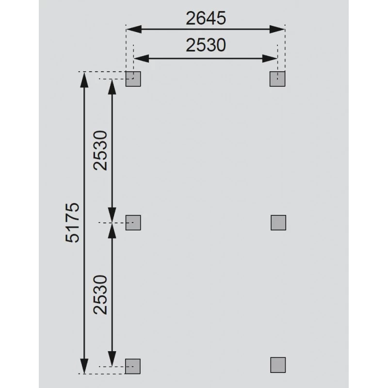 Dimensions extérieures (LxP) : 264,5×517,5cm