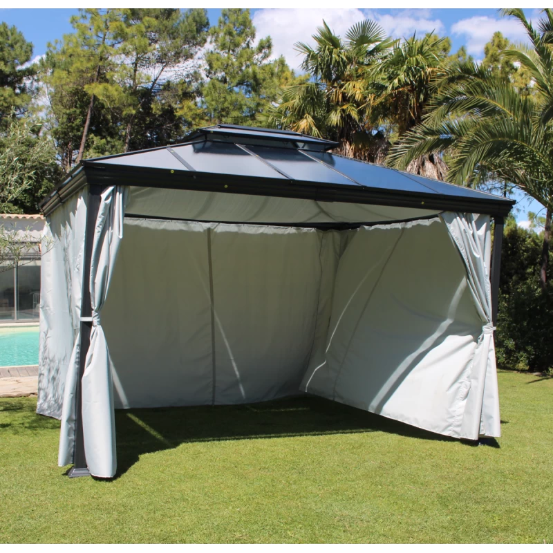 L’avis du spĂ©cialiste pour la pergola autoportante 300x360cm en aluminium avec rideaux latĂ©raux et toile de toit – OPALE :