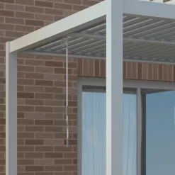 Les manivelles fournies sont simples d’utilisation. Sans difficulté, vous gérerez l’inclinaison des lames selon vos besoins. Ces manivelles, amovibles, sont positionnées de telle sorte que vous puissiez fixer des rideaux latéraux (en option) sur chacun des côtés, pour vous protéger encore plus efficacement du soleil ou du vent. Ces rideaux sont facilement rétractables pour ne pas avoir à les démonter quand vous ne les utilisez pas.