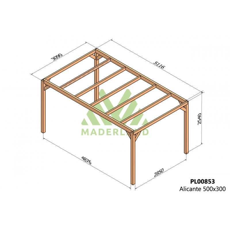 Pergola En Bois Lamellé-collé 500x300cm Alicante – Maderland