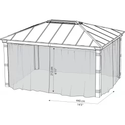 Chaque pan de la moustiquaire est équipé de fermetures éclair pour les unir entre eux, protégeant votre tonnelle de toute incursion d’insectes. Cette moustiquaire, en plus de son aspect fonctionnel, apportera un joli cachet étoffé à votre gazebo Dallas.