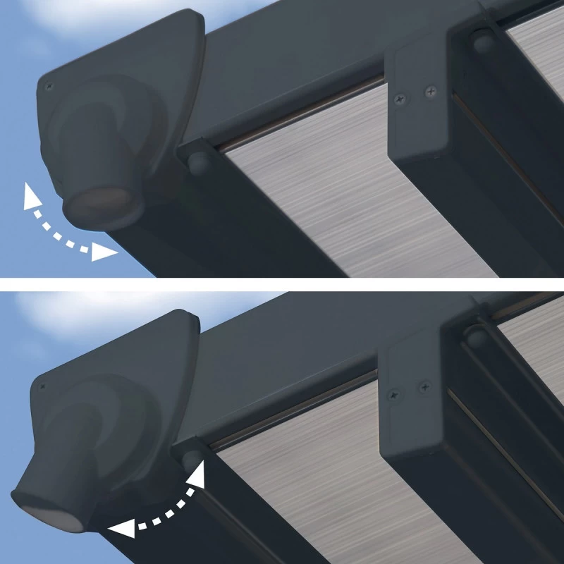 Conçu pour s’intégrer aisément dans votre espace disponible, le toit de terrasse Feria de Canopia by Palram est ajustable en hauteur et en profondeur. La distance entre les poteaux peut aussi varier.