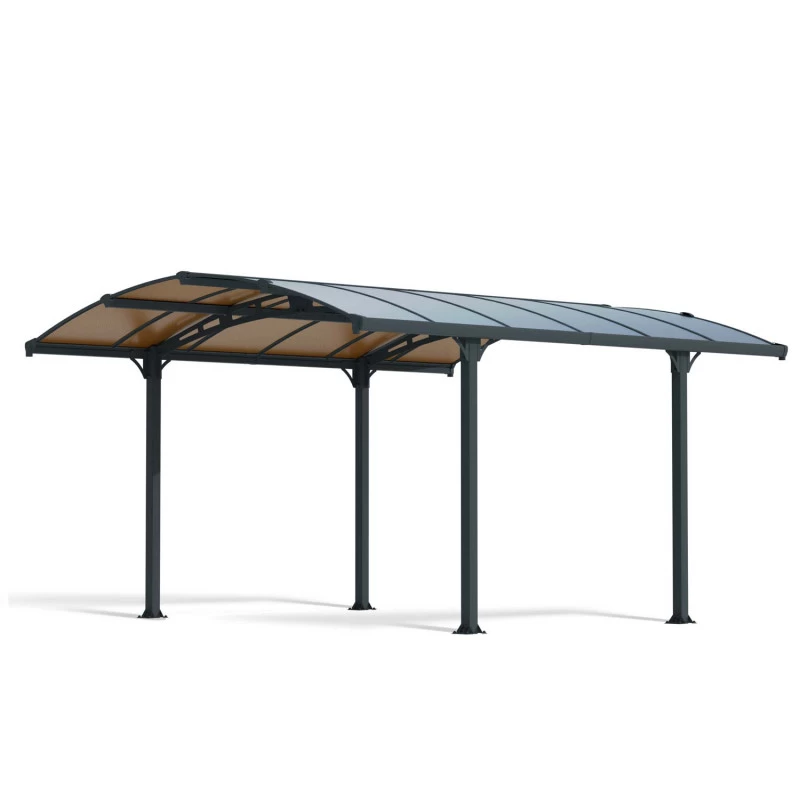 Toit : polycarbonate à double paroi, épaisseur 6mm, teinté en bronze, finition anti-UV, transmission lumineuse 15%